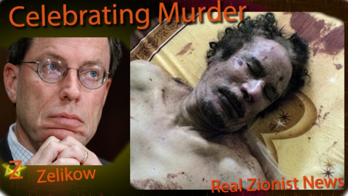 このハアスの血への渇望の呼びかけに素早く反応して、ユダヤ人ネオコンで、アメリカ国務省顧問で9・11委員会議長のフィリップ・ゼリコウは、「カダフィの破滅」は「民主的な春」の動きをアラブ世界全体に起こすと書いた。
