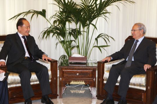 中国の中東特使と会談するシリア外相