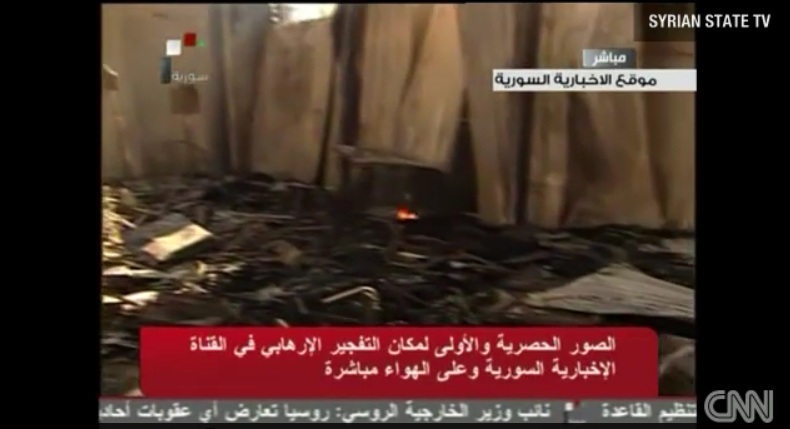 27日、爆弾攻撃にあったシリアのテレビ局内部