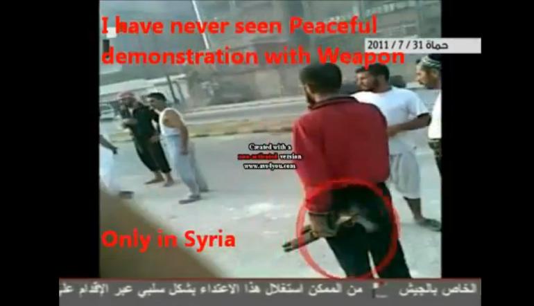 「武器を持っての「平和的デモ」はシリアだけ」 とキャプションがついている