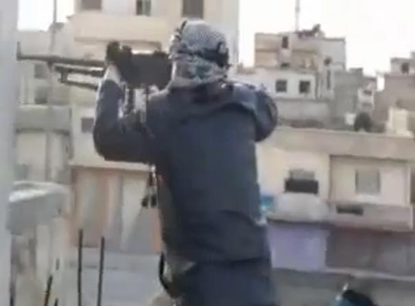 ホムスで政府軍に向かって射撃する武装テロリスト