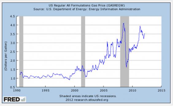 ●2012年に入ってからガソリン平均価格は年初価格から25セント上昇した。