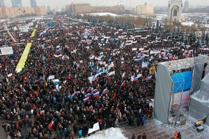 この一月、モスクワは2月4日のラリーのため緊張していた。このラリーは以前より計画されていて反プーチンで親欧米リベラルの反政府組が準備したものだ。白色とオレンジ色で統一している。マイナス20度という寒さにも拘わらず、このラリーのオーガナイザーは、クリスマスの時のラリーの集合者数を越え、政府支持者の意志をへこませたいと願っていた。参加者らは皆、保温性下着を店で買い、反イスラム国家主義者勢力の支援を受け、力強く行進した。警察は3万8000人強と発表した。デモ隊自身の推計では6万以上だったという。