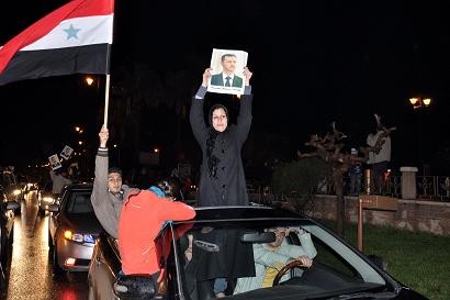 シリアのダマスカスその他の地区では金曜日、昨日発表されたアサド大統領の決定とアサド大統領の下での国家統一を主張して大掛かりなデモが行われた。