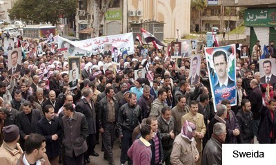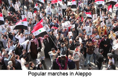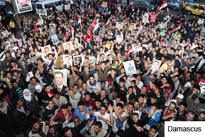 ダマスカスでは、大衆デモ隊は市中と郊外を練り歩いた。参加者は汎アラブ主義のシリアを標的とする外国勢力の工作に直面しているシリアにおいて、国家の一体性を厳守し安全保障と安定を保持することを主張した。