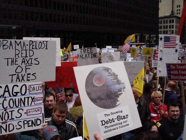 また他のプラカードには、オバマ・ペロシは悪の枢軸ならぬ、税の枢軸だ、とある。