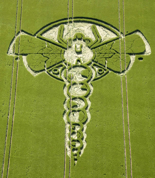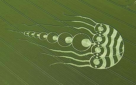 先日、これに絡んで、日本で多発したオタマジャクシ落下?事件で、水生生物とトンボの羽、の組み合わせに何らかのメッセージを感じると書いたが、なんとそのころ日本と同じ島嶼国家であるイギリスでは、やはり水生生物(くらげ)とトンボの図案のサークルが出現していたのである。これは単なる偶然なのか?それともこの2つの似たような国における珍現象に何らかの共通のメッセージがあるのか、気になるところだ。