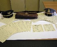 かばんからは額面5億ドルの“米国債”249枚と、故ケネディ米大統領時代に発行された額面10億ドルの“ケネディ債”10枚が出てきた。米財務当局に問い合わせたところ、ニセの債券とわかった。2人は携帯電話を4台ずつ、警察の制帽のように見える帽子も2つ所持していた。