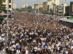 目撃者によると、若者中心のムサビ氏支持の市民が、市中心部のエンゲラプ(革命)広場から西のアザディ(自由)広場まで約5キロを練り歩いた。ムサビ氏はアザディ広場で「再選挙が実施されるまで抗議運動を続ける」と宣言した。