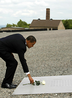 オバマ大統領は5日、アリエフ・エルダド議員が、「行けば理解できるようになる」と語ったブーヘンバルト強制収容所を訪れ、白バラを献花した。
