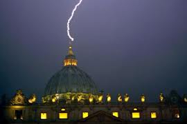 昨夜、バチカンのドームを雷電が打った。これはHAARPの陰謀だろうか? あるいは怒れる天の徴か? 勿論、これがイリュミナティのサインであると考える事はできるかもしれない。最後の希望と見ていた通常のカトリック信者らを落胆させた教皇の辞職という出来事の翌日のことだった。