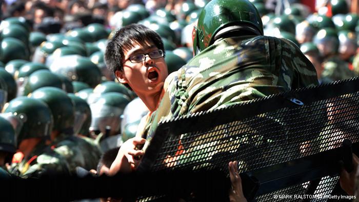 反日デモ隊が警官隊と衝突