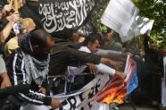 アメリカ国旗を焼くデモ隊