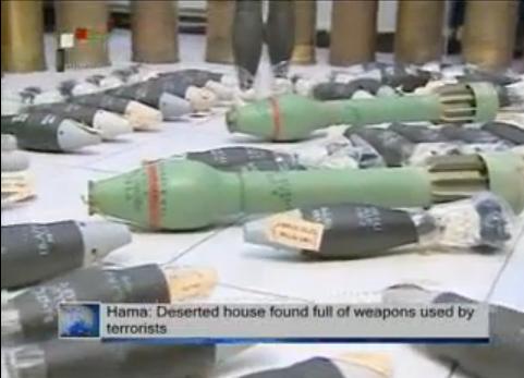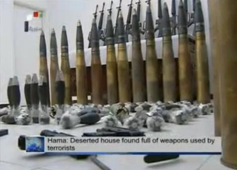 シリアのハマで武装反政府勢力の拠点で見つかったイスラエル製武器